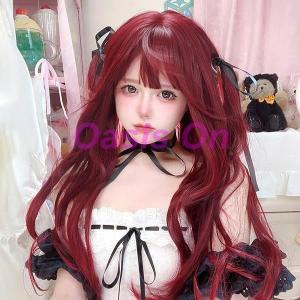 ウィッグ レディース フルウィッグ ロング ストレート 赤髪 ワインレッド ぱっつん前髪 前髪あり 可愛い かわいい 大人用 コスプレ 原宿風