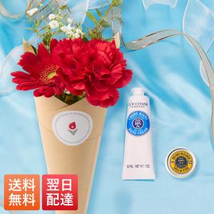 お花ギフト ブルーミー 公式 ロクシタン シアハンドクリーム と シアバター と お花3本 セット 誕生日 プレゼント プチギフト 女性 20代 30代 40代 50代 60代
