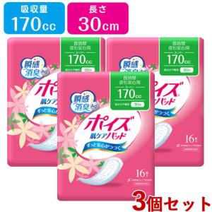 ポイズ 肌ケアパッド スーパー 夜も安心用 (吸収量170cc、長さ30cm) 瞬間消臭 16枚入×3個セット 日本製紙クレシア(Crecia) 送料込
