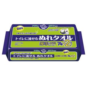 アクティ 楽ケアシリーズ トイレに流せるぬれタオル 厚手・大判 200mm×200mm 76枚入 日本製紙クレシア(Crecia)