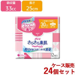 ポイズ さらさら素肌 吸水ナプキン Happinessin ハピネスイン 30cc 長さ25.0cm 快適の少量用 羽つき 12枚入×24個セット 日本製紙クレシア 送料込(北海道除く)