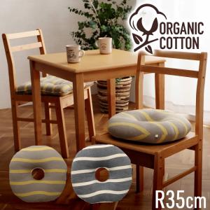 クッション 35cm丸 オーガニックコットン オールシーズン 円座 円形 国産 日本製 ボーダー柄 洗える 手洗い 敬老の日