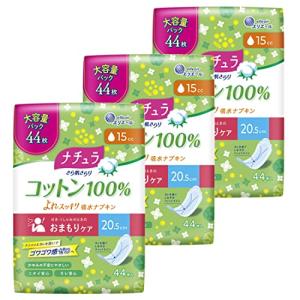 ナチュラ さら肌さらり コットン100% よれスッキリ 吸水ナプキン 15cc 20.5cm 132枚(44枚×3パック)【大容量】【まとめ買い