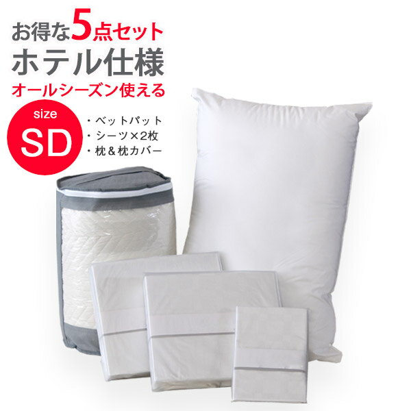 セミダブル ベッドパット シーツ2枚 枕カバー ホテル仕様寝具5点セット 枕 セット ベッドパッド ボックスシーツ セミダブルサイズ 綿100% 洗える 吸湿 吸水 サラサラ ピロ—ケース ピロ— シンプル 送料無料
