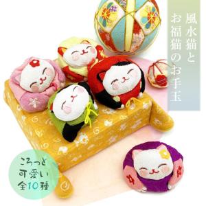 お手玉 ちりめん 風水猫とお福猫のお手玉 猫 ねこ 福猫 ちりめん 縁起物 昭和 レトロ 和雑貨 小物 知育 昔遊び 京都 伝統 贈り物 ギフト ちりめん細工館