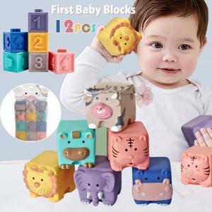 音の出るおもちゃ ブロック 赤ちゃん 積み木 子供 知育玩具 柔らかい お風呂遊び ベビー向けおもちゃ ソフトブロック はじめての積み木 12pcs