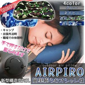 エア 枕 エアピロー エアー クッション 4色 ネイビー グレー 迷彩 アウトドア キャンプ 旅行 携帯枕 収納袋 付き ソロキャン 車中泊 災害用 トラベル AIRPIRO
