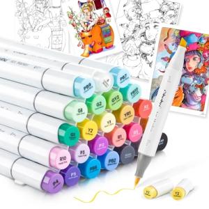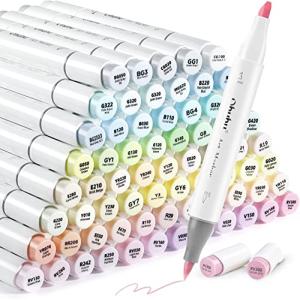 Ohuhu 水性マーカー アートマーカーペン 60色 マーカーペン イラストマーカー 筆先 水彩ペン 水性インク 鮮やか イラスト 手帳 絵手紙