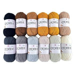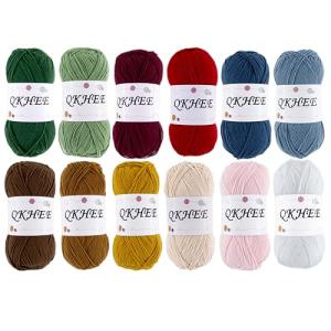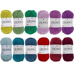 QKHEE コットンヤーン 合太 中細 毛糸 12色セット1玉約50g180m かぎ針編み 編み物 編み糸 織り糸 ぬいぐるみ用糸 (幻彩)
