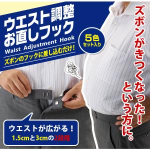 ウエスト調整お直しフック 5色セット 裁縫道具 ズボン 直し ウエスト アジャスター パンツ サイズ直し ウエスト調節 サイズ 広げる 調整
