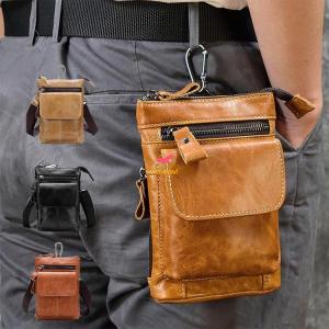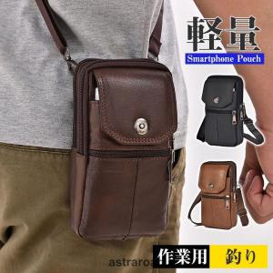 スマホポーチ ベルトポーチ メンズ ショルダー カラビナ付 PU レザー ウェストポーチ ヒップバック 大容量 作業用 軽量