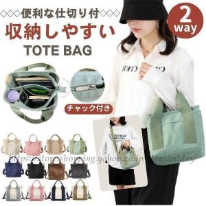ミニトートバッグ レディース 帆布 仕切り ポケット多い 2WAY ショルダー ファスナー付き キャンバス ミニ 小さめ 大容量