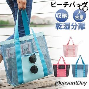 ビーチバッグ クリアバッグ レディース メッシュ トートバッグ プール 収納バッグ 海水浴 大容量 軽量 水泳 手提げ スイムバッグ ジム 通勤 旅行