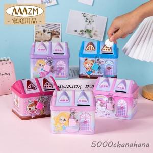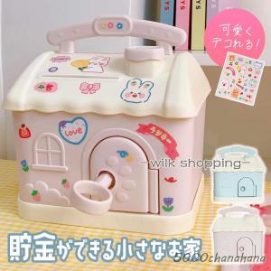 小さな家 貯金箱 家型 貯金箱 子供 コイン お札 紙幣 鍵付き 家型 可愛い 手提げ金庫 おもちゃ 大容量 玩具 おこづかい 女の子 誕生日プレゼント