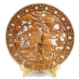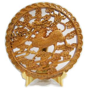 麒麟 キリン 円盤 置物 29cm カービング 彫刻 木製 パインツリー インテリア オブジェ アジアン