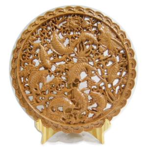 鯉 コイ 円盤 置物 29cm カービング 彫刻 木製 パインツリー インテリア オブジェ アジアン