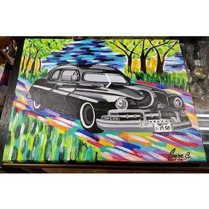 レインカラセド 絵画 本人肉筆 直筆 [1955 Cadillac]アメ車 ホットロッド ローライダー レッドスレッド usdm jdm