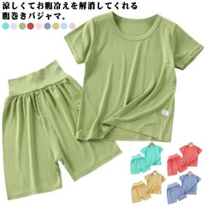 夏用 パジャマ 半袖 ハーフパンツ 腹巻付き 男の子 無地 女の子 セットアップ ベビー服 涼感 涼しい 爽やか 薄手 冷え防止 ルームウェア 部屋着