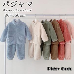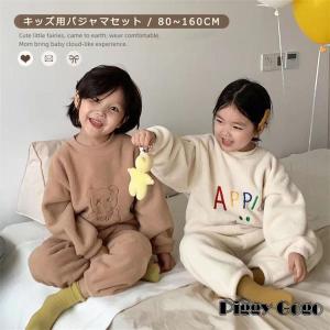 セットアップ キッズ ルームウエア 上下セット ベビーパジャマ 子ども 秋 部屋着 女の子 男の子 前開き パジャマ モコモコ 冬 暖かい 裏起毛 防寒 ナイトウェア