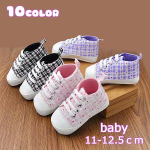 子ども用 スニーカー ベビー 赤ちゃん 靴 シューズ 外履き ズック レースアップ 紐靴 柄 女の子 男の子 女児 男児 赤ちゃん チェック 星 スタ