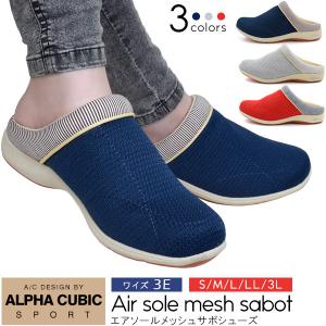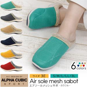 サボサンダル レディース メッシュ エアソール つっかけ アルファキュービック 靴 夏 3E 履きやすい スリッポン 30代 40代 50代 送料無料