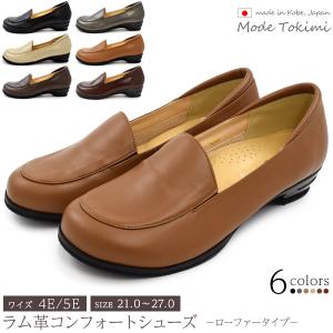 靴 女性 ローファー レディース ラム革 本革 Mode Tokimi コンフォートシューズ やわらか 幅広 パンプス 4E 5E 40代 50代 60代 エアヒール 日本製