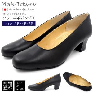 靴 女性 パンプス 黒 ソフト牛革 レディース 日本製 プレーンパンプス 5cmヒール 本革 Mode Tokimi 歩きやすい 幅広 3E 4E 5E 神戸 21.5〜25cm 日本製