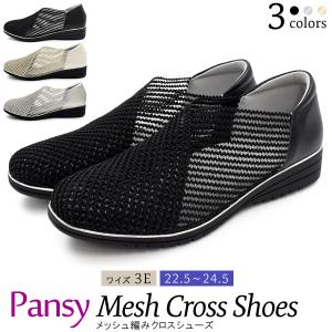 パンジー 靴 レディース スリッポン 軽量 メッシュクロスシューズ 3E Pansy 蒸れにくい 抗菌 おしゃれ 履きやすい 22.5〜24.5cm 女性