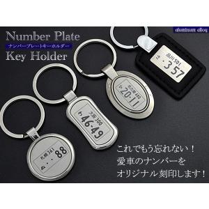 ナンバープレートキーホルダー アルミ製 レーザー刻印 オリジナル名入れ メタル/レザー ギフトボックス付