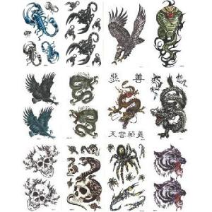 タトゥーシール A〜N 選べる5枚セット ボディー用 タトゥシール 龍 蛇 ドクロ 蜘蛛