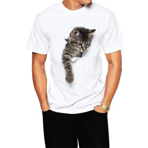 メンズTシャツ 猫 Tシャツ メンズ 白 おもしろ 服 かわいい ネコ柄 トリックアート 風 半袖 シャツ (ポリエステル ドライ)
