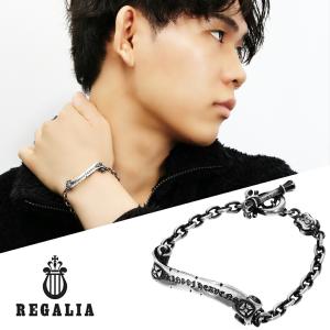 REGALIA スクロール プレート シルバー ブレスレット アイアンクロス 十字架 ハープ マンテル 竪琴 メンズブレスレット 腕輪 ブレス メンズ 男性 彼氏