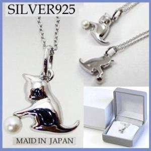 A015(シルバー925 ラブリーな子猫ペンダントネックレス Cat・日本製)送料無料(高級BOX付)ラッキーおすましネコさん