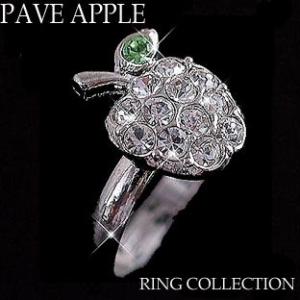 YBB038 〜店長の独断でやっちゃいました!〜【巾着プレゼント!プラチナコートのアップルラインストーンリング】大人の高級感あふれる林檎のリング