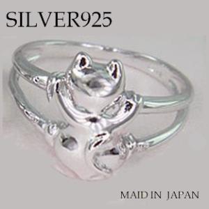A041(シルバー925幸せ3匹の親子猫リング)日本製)巾着付)ネコリング3匹可愛いデザイン幸せを運ぶネコトリプルリングCATネコペンダントネックレスも大人気