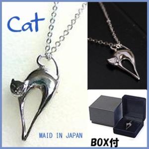 A543送料無料(キュートな猫ペンダントネックレス Cat・日本製)プラチナコート高級BOX付おすましネコ幸せ運ぶキヤットペンダント幸運猫ネコネックレスR−CAT