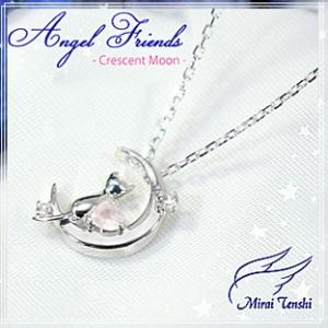 A578送料無料(未来天使 Angel Friends クレセントムーン シルバーネックレスペンダントMIP1165/日本製)シルバー950・天然石サファイア・ローズクォーツ