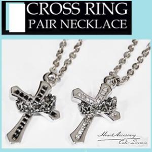 A599■送料無料2本組(クロスと王冠リングペンダントネックレス)巾着付クラウンリングクロスペンダントネックレスリングクロスネックレスペンダント