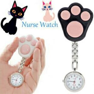 YBB1042 ネコちゃんリール式ナースウォッチ, キャットナースウォッチ猫看護師クリップウォッチ看護婦 保育士バラナースウオッチねこナースウォッチ