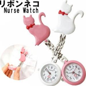 YBB977 リボンネコナースウォッチ, ねゃんこリボンキャット猫看護師クリップウォッチ看護婦 保育士バラナースウオッチローズ懐中時計