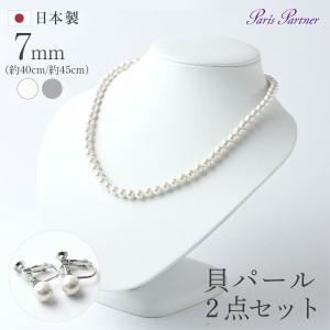 貝パール ネックレス イヤリング セット 7mm 40cm 45cm 日本製 ケース付き フォーマル アクセサリー 冠婚葬祭 SH-N-7