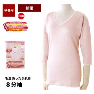 レディース インナー 8分袖 裏地綿100% ニットキルト あったか 毛混 秋 冬 日本製 入院 介護 新栄 K442000 M L LL