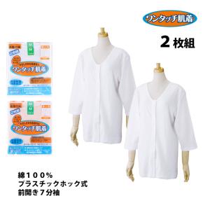 インナー レディース 7分袖 プラスチックホック 綿100% 2枚組 婦人用 介護 肌着 S M L LL ワンタッチ肌着 ウェル K478696