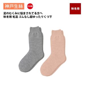 神戸生絲 コベス 靴下 レディース ゴムなし すべり止め付き ゆったり 日本製 入院 介護 通年用 22-24cm KO3334H