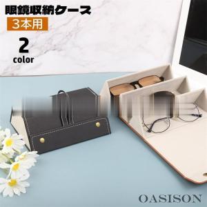 メガネケース 3本収納 眼鏡収納ボックス 取っ手付き 壁掛け スナップボタン 折り畳み式 メガネ収納 レザー調 メガネ入れ サングラス収納 小物入れ