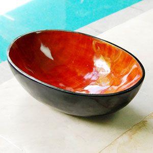 アジアン雑貨 ウッドの赤いスパボウル 楕円形 アジア工房 10480