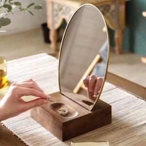 スタンドミラー 鏡 かがみ カガミ ミラー 卓上鏡 テーブル アンティーク調 コンパクト オーバル 化粧鏡 可愛い メイクアップミラー 軽量 インテリア雑貨 66715