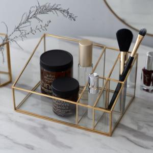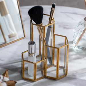 ブラシ スタンド コスメ ガラス 真鍮 5分割 収納 ボックス メイク アクセサリー アンティーク 風 ディスプレイ おしゃれ 北欧 雑貨 インテリア 西海岸 67070
