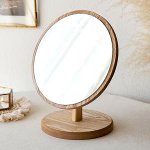 卓上 ミラー 鏡 木製 円形 丸型 角度調節 スタンド 化粧 立て掛け メイク 置き テーブル 玄関 トイレ 洗面所 ホテル用 かわいい シンプル ナチュラル 67105