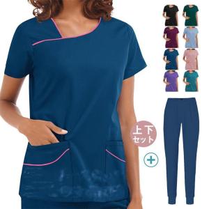 ナース服 スクラブ 白衣 レディース 上下セット セットアップ 半袖 多色 制服 看護師 介護士 通気性 無地 医者 快適 春秋 夏物 吸汗 洗える
